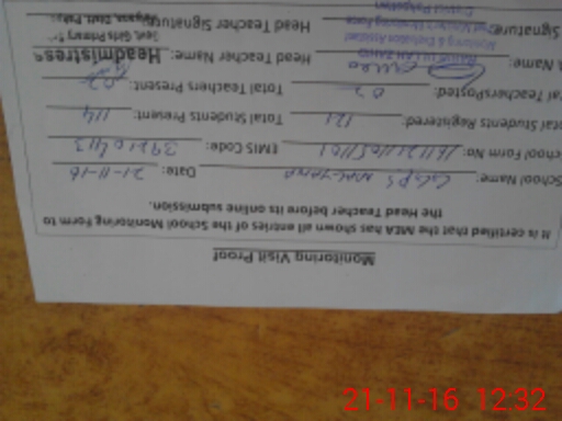 | Attendance Register | Head Teacher | MEA with School | Visit Proof |