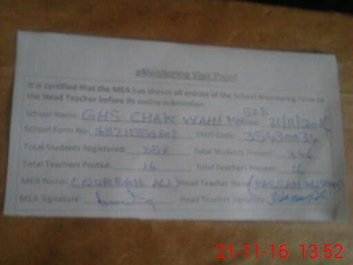 | EMIS Code: 35430034 | Name of School: GHS CHAK WAHI NO. 522 | |||