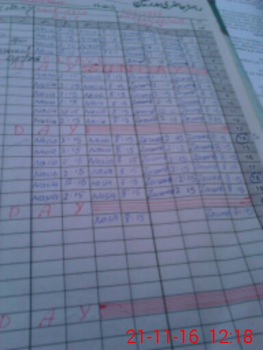| CNIC | Full Name | Designation | R/C | Absence During Last Calender Month |