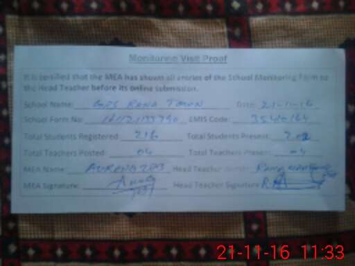 | EMIS Code: 35410164 | Name of School: GPS RANA TOWN | |||