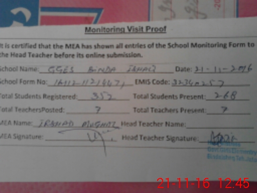 | EMIS Code: 32340257 | Name of School: GGHS BINDA ISHAQ | |||