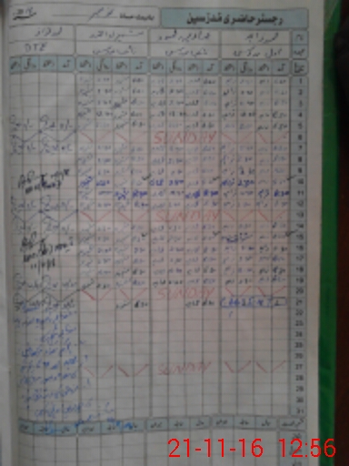 | CNIC | Full Name | Designation | R/C | Absence During Last Calender Month |