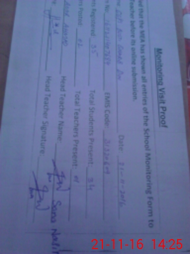 | Attendance Register | Head Teacher | MEA with School | Visit Proof |
