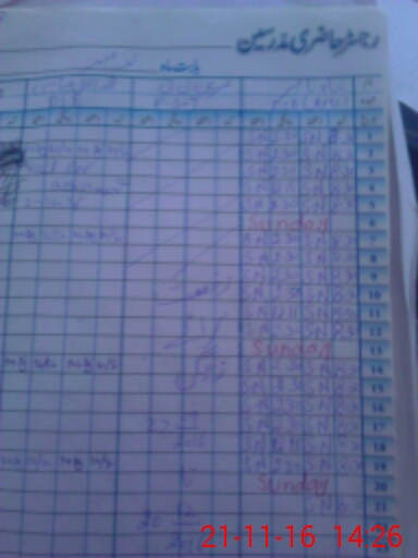 | CNIC | Full Name | Designation | R/C | Absence During Last Calender Month |