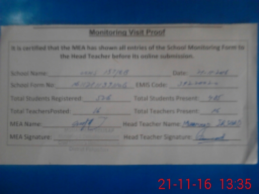 | Certified that this School was Inspected by the Undersigned MEA/DMO Today and the Information Stated Above is as Per Record. | |||||