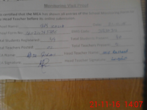 | Attendance Register | Head Teacher | MEA with School | Visit Proof |