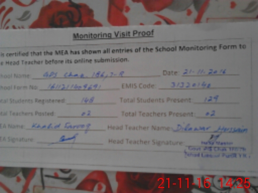 | EMIS Code: 31320140 | Name of School: GES CHAK 186/7R | |||