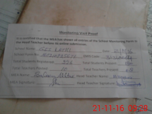 | Certified that this School was Inspected by the Undersigned MEA/DMO Today and the Information Stated Above is as Per Record. | |||||