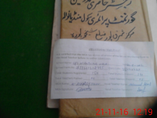 | Name: MU**** AS**** Designation: (School Headmaster's/Headmistress's) PTC/JV Phone/Cell Number: 03**** |