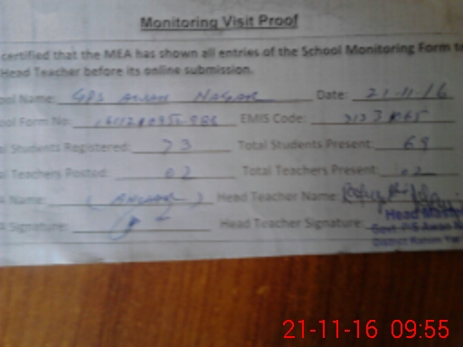 | EMIS Code: 31331065 | Name of School: GPS AWAN NAGAR | |||