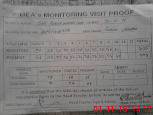 | Certified that this School was Inspected by the Undersigned MEA/DMO Today and the Information Stated Above is as Per Record. | |||||