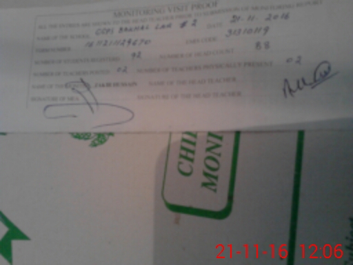 | Attendance Register | Head Teacher | MEA with School | Visit Proof |