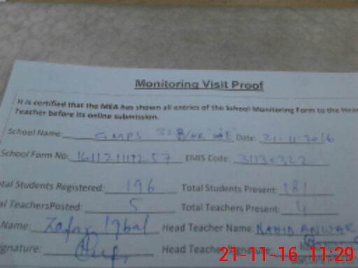 | Attendance Register | Head Teacher | MEA with School | Visit Proof |