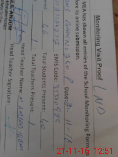| Attendance Register | Head Teacher | MEA with School | Visit Proof |