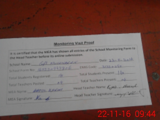 | Attendance Register | Head Teacher | MEA with School | Visit Proof |