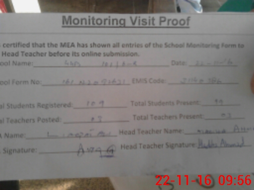 | Certified that this School was Inspected by the Undersigned MEA/DMO Today and the Information Stated Above is as Per Record. | |||||