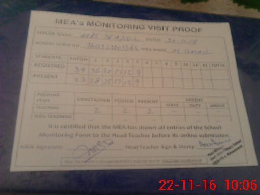 | Monitoring Date: 22-11-2016 | Start Time: 22-11-2016 09:46 AM | End Time: 22-11-2016 10:07 AM | Name of MEA: Z.**** M.Is**** | |