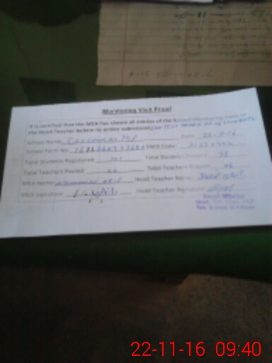 | Certified that this School was Inspected by the Undersigned MEA/DMO Today and the Information Stated Above is as Per Record. | |||||