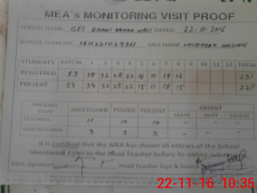 | Attendance Register | Head Teacher | MEA with School | Visit Proof |