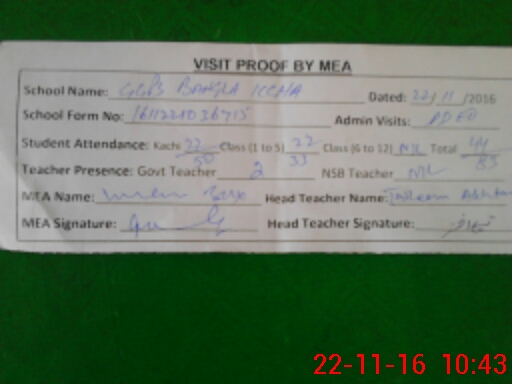 | EMIS Code: 32430195 | Name of School: GGPS BANGLA ICHHA | |||