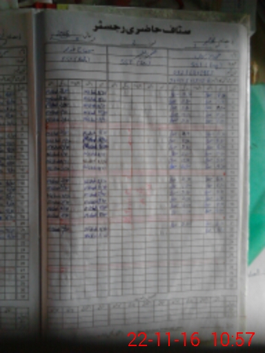 | CNIC | Full Name | Designation | R/C | Absence During Last Calender Month |