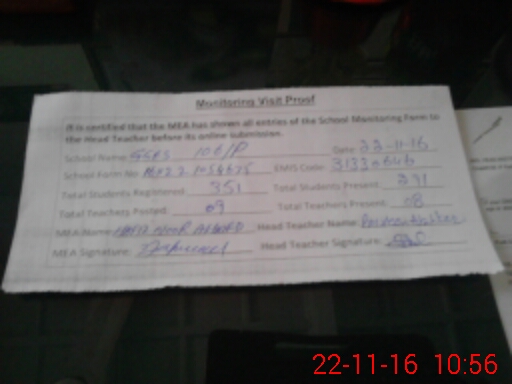 | Attendance Register | Head Teacher | MEA with School | Visit Proof |
