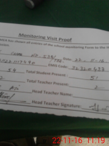 | Attendance Register | Head Teacher | MEA with School | Visit Proof |