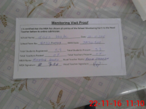 | Attendance Register | Head Teacher | MEA with School | Visit Proof |