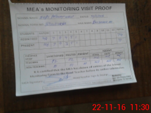 | Attendance Register | Head Teacher | MEA with School | Visit Proof |
