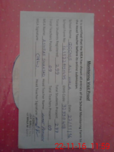 | EMIS Code: 32330418 | Name of School: GGCMS ALI WALA | |||