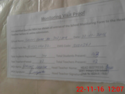 | Certified that this School was Inspected by the Undersigned MEA/DMO Today and the Information Stated Above is as Per Record. | |||||