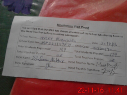 | Certified that this School was Inspected by the Undersigned MEA/DMO Today and the Information Stated Above is as Per Record. | |||||
