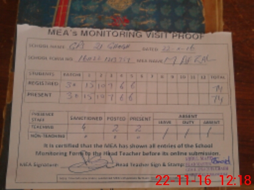 | Attendance Register | Head Teacher | MEA with School | Visit Proof |