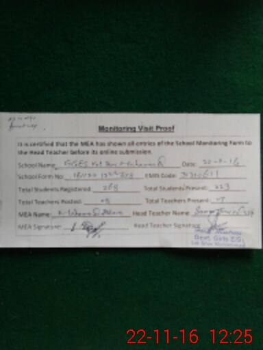 | Attendance Register | Head Teacher | MEA with School | Visit Proof |