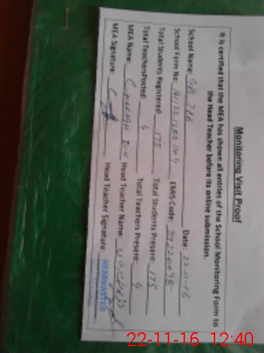 | Certified that this School was Inspected by the Undersigned MEA/DMO Today and the Information Stated Above is as Per Record. | |||||