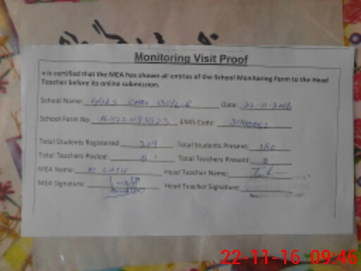 | Attendance Register | Head Teacher | MEA with School | Visit Proof |