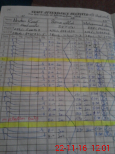 | CNIC | Full Name | Designation | R/C | Absence During Last Calender Month |