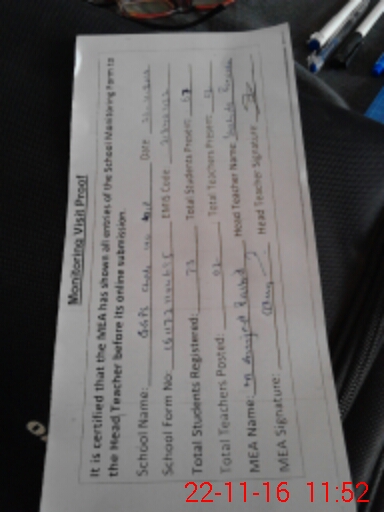 | Attendance Register | Head Teacher | MEA with School | Visit Proof |