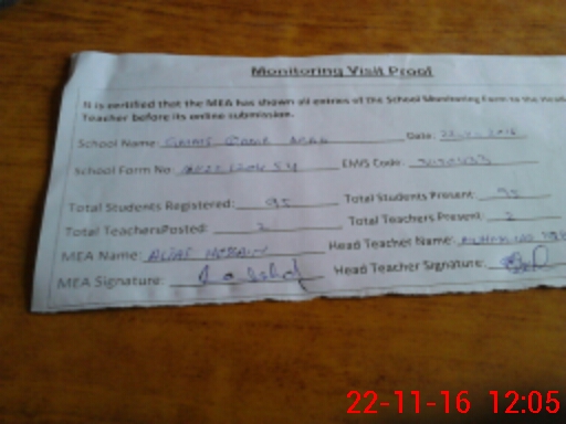 | Attendance Register | Head Teacher | MEA with School | Visit Proof |
