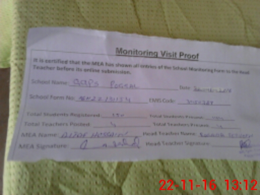| Attendance Register | Head Teacher | MEA with School | Visit Proof |