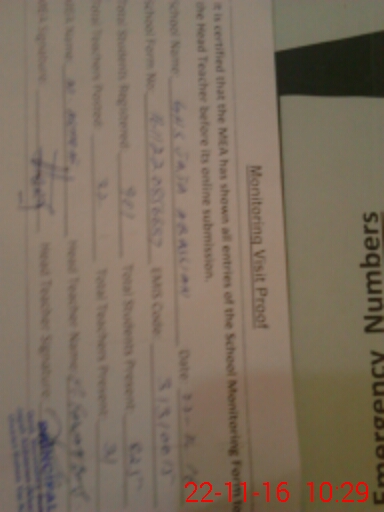 | Name: HA**** AH**** Designation: (School Headmaster's/Headmistress's) Adational Charge Phone/Cell Number: 03**** |