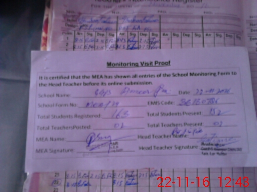 | Attendance Register | Head Teacher | MEA with School | Visit Proof |