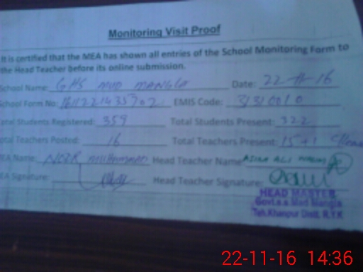 | Certified that this School was Inspected by the Undersigned MEA/DMO Today and the Information Stated Above is as Per Record. | |||||