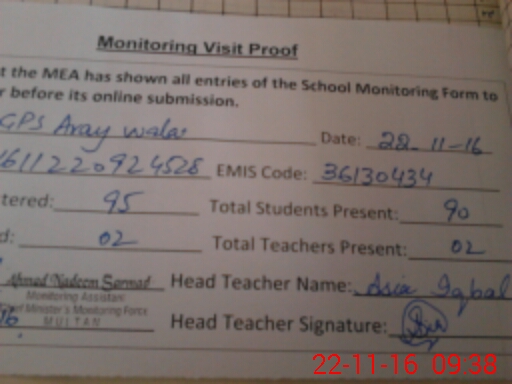 | EMIS Code: 36130434 | Name of School: GGPS AARAY WALA MUZA JHOK LASHAKAR PUR | |||