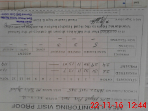 | Attendance Register | Head Teacher | MEA with School | Visit Proof |