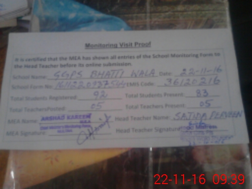 | EMIS Code: 36120216 | Name of School: GGPS BHATTI WALA SHUJABAD | |||