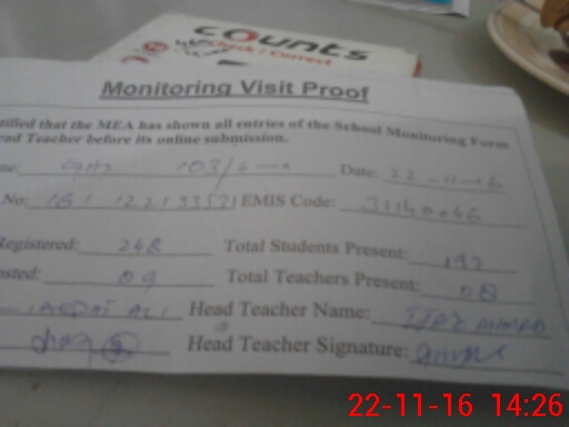 | Certified that this School was Inspected by the Undersigned MEA/DMO Today and the Information Stated Above is as Per Record. | |||||