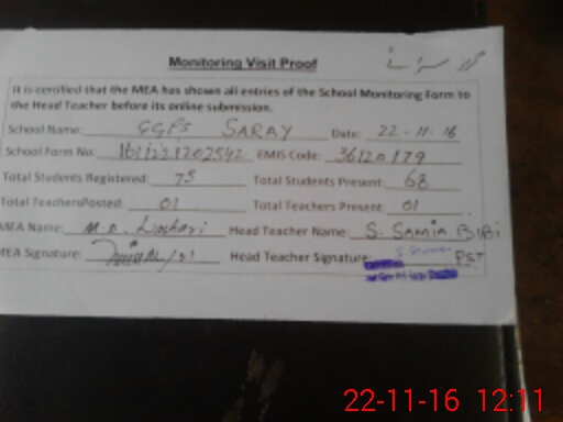 | EMIS Code: 36120179 | Name of School: GGPS SARAY TEH.SHUJABAD | |||
