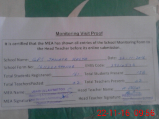 | Certified that this School was Inspected by the Undersigned MEA/DMO Today and the Information Stated Above is as Per Record. | |||||
