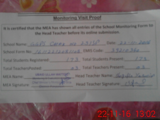 | Certified that this School was Inspected by the Undersigned MEA/DMO Today and the Information Stated Above is as Per Record. | |||||